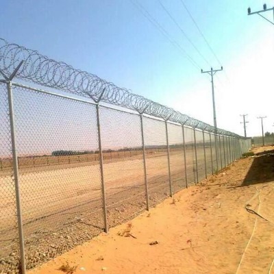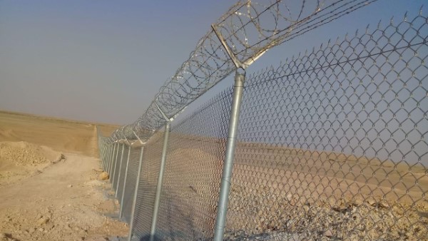 - توريد وتركيب 3 خطوط شائكة بسمك 2 ملي وتثبيتها فوق الذراع المائل أعلى الشبك.