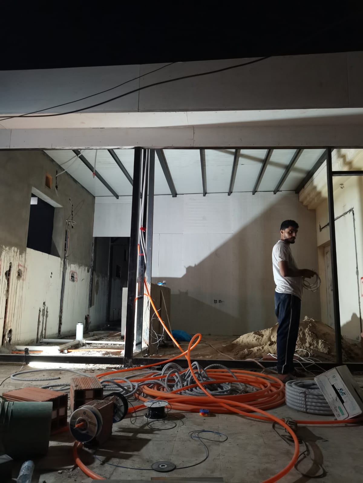 - تركيب الهيكل الفولاذي: يشمل ذلك تثبيت الأعمدة والأدراج والعارضات.